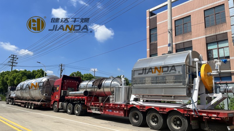 在五車(chē)奔赴客戶的貨車中,4台盤式(PLG-2500*4)、4台盤(pán)式(PLG-2500*10)發往四川,1台滾筒刮板幹燥機(TG-19/32)發往(wǎng)上海,1台滾筒刮板幹燥機(TG-1.9/3.2)發往廈門。