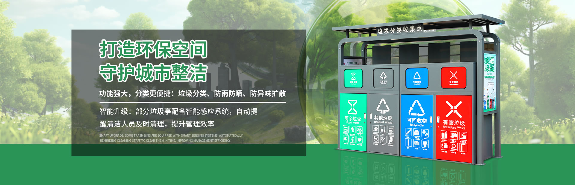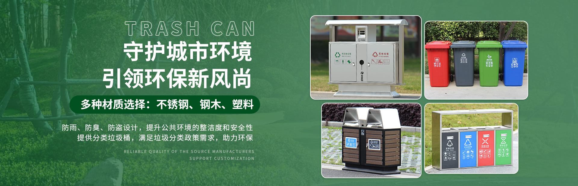 中星企業,是質造源頭(tóu)工廠,專注於致力提供淨化美化公共環境產品,專業製造垃(lā)圾(jī)分類桶、垃圾(jī)亭、護欄、環保廁所、花(huā)箱、公園椅(yǐ)等環(huán)衛配套產品。