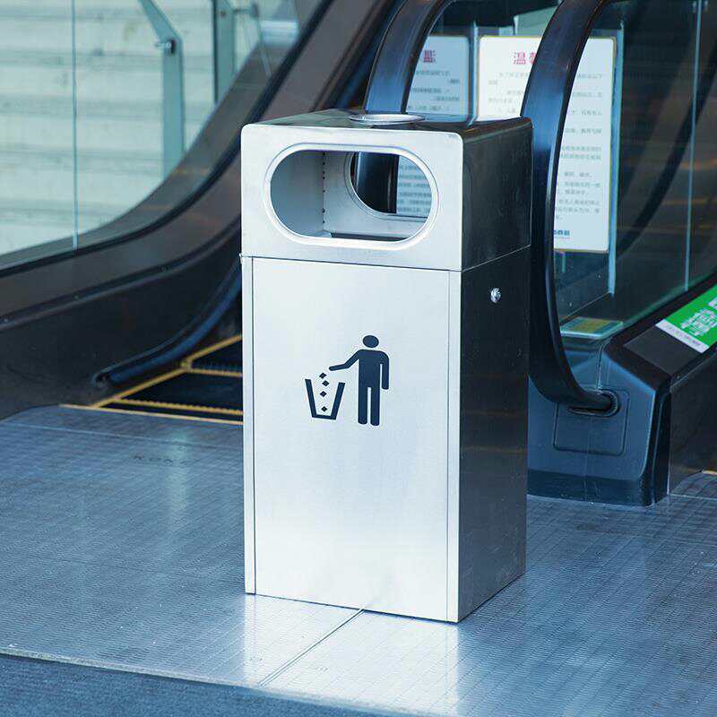 【品名】地鐵垃圾桶  【品牌】 中星  【型號】 DT-1006  【材質】優質不(bú)鏽鋼  【內膽】鍍鋅板(bǎn)、不鏽鋼  【製作工藝】選用(yòng)優質不鏽鋼鋼板裁剪、壓製、折彎後再焊接而成型  【噴塗工藝】垃