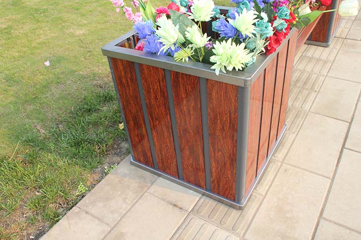 產品特(tè)點:本花箱主要采用鋁合金型材製作而成,鋁合金結構構件一次性澆(jiāo)築成形、上(shàng)下兩圈結構采用靜電粉末噴塗處理工藝;四周側麵板采用木紋轉印工藝(yì),使整個花(huā)箱木質感加強,外觀呈現的更加高端有檔次,適(shì)合放在庭院,小區,別墅,公園,道路中間及道路(lù)兩側等區域。