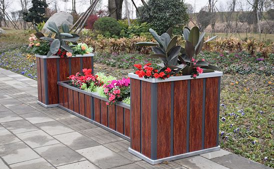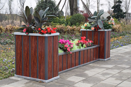 產品名(míng)稱:木紋鋁合金花箱豎版  產品顏色:紅木紋(可定(dìng)製其它色樣)  產品規格(單位:mm):總長(zhǎng):3130;兩側:425*780*800;中間:1140*425*400  花(huā)箱材質:鋁合金  產品特點(diǎn):本花箱(xiāng)主要采用鋁合金型材製(zhì)作(zuò)而成,鋁合金結構構