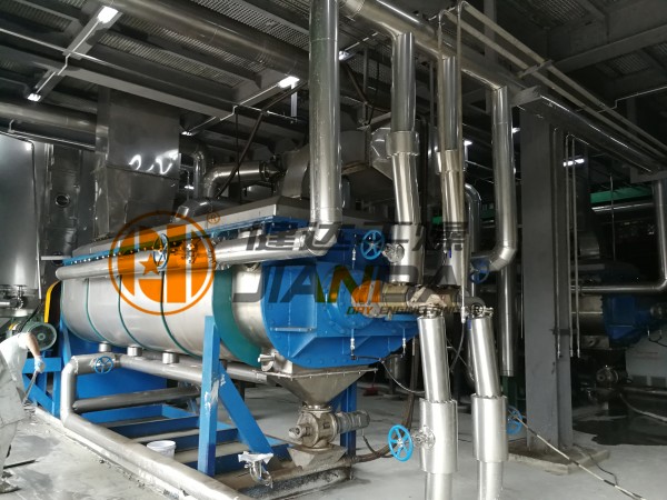 整個生產線產能為1t/h(幹料),能實現24小時連續運作;物(wù)料的原始水份為10%,經過幹燥(zào)後可達0.5%以下;我司設備的特殊性在於幹燥盤等與物料接觸部分采用鈦材製作,可減少物料盤對電池材(cái)料的磁性吸引,常規使用的(de)不鏽鋼材質,因其(qí)含有鎳(niè)元素,在幹燥電池材料時會有一定(dìng)磁性影響,從(cóng)而影響^後的出料效果。