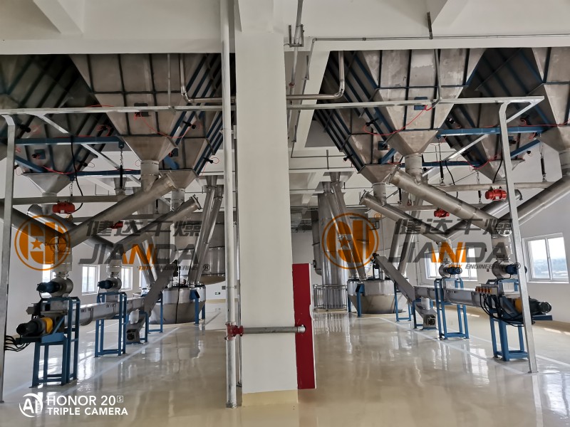 我(wǒ)司自主(zhǔ)設計的豌豆膳(shàn)食纖維幹燥係統,采(cǎi)用獨^技術工藝,包含熱風係統,閃蒸幹燥主機、二次(cì)旋流幹燥、收料(liào)係統、尾氣係統、控製係統等。因豌豆渣初含(hán)水分較大,經我(wǒ)司改良設計的幹燥主機采用加高型閃蒸(zhēng)幹燥機(XSG-2200);在攪拌粉碎室內部裝有排汙口,主塔下部裝有可視清潔門,保障產品的安全生產(chǎn);在攪拌軸承采(cǎi)用油浴冷卻,能有效延長傳動部件的使用壽命;全自動化生(shēng)產,全封閉式(shì)加工,杜絕食品汙染,終端產(chǎn)品穩定性(xìng)極。