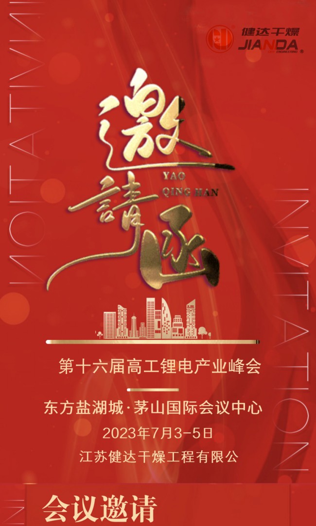 非常感謝(xiè)您對麻花传媒MV在线观看(dá)幹燥一如既往的(de)關注與支持!2023年7月3日(rì)至5日,我司將在第十六(liù)屆高工鋰電產業(yè)峰會,屆時歡迎新老客戶一同前往,共同交流(liú)研究電池類幹燥設備領域(yù)新技術、新發(fā)展、新機遇!