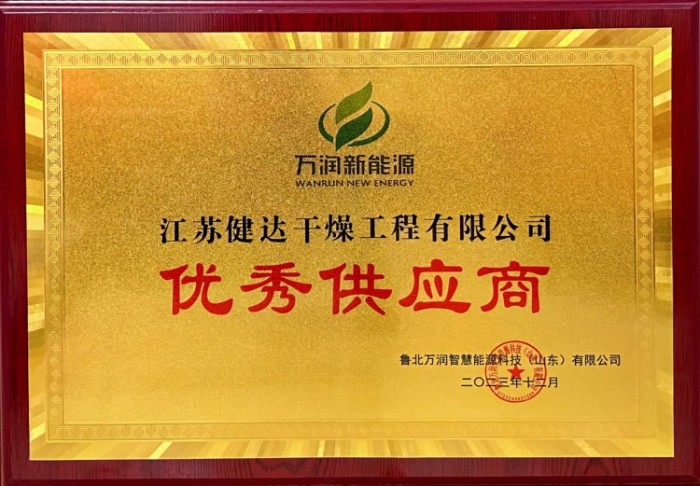 江蘇麻花传媒MV在线观看幹(gàn)燥工程有限公司(sī)憑借過硬的產品質量、及時的交貨速度(dù)、細致完善的(de)售後服務,被湖北萬潤新能源科技股份有限公司授予“優(yōu)秀供應商”榮譽稱號。